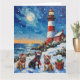 Bring charming, bat-eared cuteness to your holiday season with this adorable French Bulldog Christmas design! This magical scene features three cute, expressive French Bulldogs (Frenchies) sitting contentedly at the base of a tall red-and-white lighthouse, which stands majestically on a snowy coastal cliff. The lighthouse is beautifully adorned with glowing Christmas lights and fragrant garlands. The dogs wear festive Santa hats and cozy scarves, surrounded by colorful wrapped gifts and cheerful holly branches. The ocean waves sparkle in the moonlight while soft snowflakes drift gently in the air, creating a truly magical winter holiday atmosphere. This design is a perfect Christmas gift for any French Bulldog owner, dog lover, or admirer of festive and beloved companion dog art, capturing the serene joy of the season.