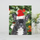 Cute French Bulldog with Christmas Tree Ornaments Snow Man in background.