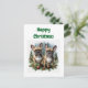 Two adorable French Bulldogs wish Merry Christmas and lie in the Christmas wreath. Everything is festively decorated with globe lights and tinsel. The bulldogs feel comfortable in the Christmas atmosphere.