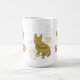 This French Bulldog design features soft flowers and leaves with a French Bulldog silhouette. Text in a script font floats around the Frenchie silhouette, describing this funny dog's characteristics.