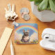 A personalised Frenchie French Bulldog memorial keychain with a painting of a happy French Bulldog on a serene heavenly hill with a beautiful rainbow overhead. Symbolising the French Bulldog has passed the rainbow bridge to doggy heaven. Personalise it with your own French Bulldog dog's name or any other text on the back side of the keychain. Makes a wonderful memorial gift for any Frenchie French Bulldog dog lover.