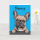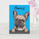 An adorable French Bulldog greeting card for birthdays, dog birthdays, dog memorials, or any occasion for Frenchie dog lovers. Personalize it with your own name or text.