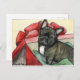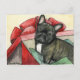 This postcard features a reproduction of my original watercolor painting of a french bulldog present.