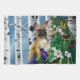 A Dryad holding a brown French Bulldog in a forest of Birch Trees.