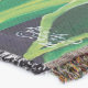 A quality printed throw has its advantages. This is a much finer weave throw than its loopier cousins, and though lighter, it is worth the investment for custom room accessorizing. The back is much prettier than the typical brown, and the fringe on the long sides very vivid, the selvage nicely done. Before photographing, I washed the throw in cold water, delicate, with a thicker woven throw the same size. On tumble dry low, this throw was dry in half the time as the other. This is a very practical quality if you use throws for furniture covers or to wrap up in frequently. The sleekness of the fabric makes it a great layer for accenting or protecting without the feeling of sitting on too much stuff. Perfect for napping or when you feel a light chill coming on. The color printing is beautiful and on this fabric, matched the design and color of my Photoshop image. This is an advantage for blending room fabrics and colors. The fringe on the short sides prints the colors from the design image and therefore varies from the side fringe. I streaked a white fractal line through the plaid pattern to give the illusion of weaving. This printed as crisp as an illusory thread, and put some white in the short side fringe, showing another advantage of print vs loomed- for artistic purposes, line lines, detail, and color integrity can be planned and preserved. My loomed throws have color limitations and more of a needlepoint texture. Print throws reproduce an exact image. The throw felt a little stiff straight out of the package, but this went away in the first delicate wash. Of course I searched the wash water for ink or bleeding and there was none.