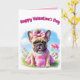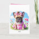 French Bulldog with pink hair bow and dress. The sweet bully in spring with beautiful flowers. The French Bulldog is a small molossian is very agile, athletic and alert. He is a clown among dog breeds and extremely lovable. The bully is very fond of children and a loyal family dog. Due to its size, it is also easy to keep in the apartment, of course, he loves his regular walk.