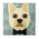 French Bulldog, Green Herringbone Tile