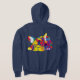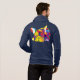 French bulldog in rainbow colors, both sides. On the chest in small, on the back quite big.