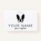 Name Badge template ideal for dog care, dog walking, dog sitting, pet photographer services. The modern design shows french bulldog head and your name.