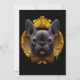 French bulldog illustration portrait with gold ornamental image frame and brown bowtie with beige polka dots