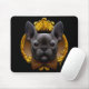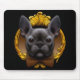French bulldog illustration portrait with gold ornamental image frame and brown bowtie with beige polka dots