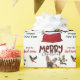 The repeated pattern on this cute Christmas wrapping paper is an image of an adorable French Bulldog peeking out from a red and white Holiday gift bag. Behind him is a sprig of holly and red berries. A red and black bullfinch bird is about to land. Stylised red and black buffalo plaid text says MERRY CHRISTMAS", and "Happy New Year" is in dark green. Your own signature is in two fields for you to customise. Be sure to see the matching gift tags.