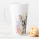 This coffee mug features a French bulldog in a flower field. The dog is standing among tall grasses and flowers, with a few fallen petals around its feet. The background is a beautiful blue sky. This mug makes a great gift for any dog lover.