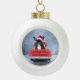 French Bulldog in Snow sitting in Christmas Truck Ceramic Ball Christmas Ornament