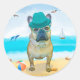 Cute dog sitting on beach is a perfect gift idea for someone who love this dog breed.