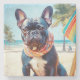 French Bulldog on Beach, summer gift for dog lover Stone Coaster