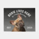 French Bulldog Personalised Dog lover welcome doormat. This welcome mat can be personalised with your dog’s name, the slogan can also be changed or you could use a picture of your own dog (make sure it's transparent). Text reads: Bodie lives here…. All treats welcome