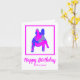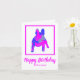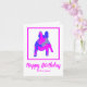 French Bulldog dog silhouette in crazy hot pink and blue bright modern abstract pattern. Funny birthday message inside can be changed to anything you want. Personalize card with name on the front.