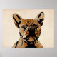 A French Bulldog in pop art style, shades of brown on a vintage background