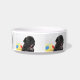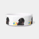 This is a heavy, durable bowl decorated with Tibbies of many colors, the perfect size for hungry/thirsty Tibs. The design is interesting and printing clear.