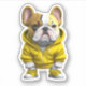 sticker expresses elegance and distinction, as the dog wears a distinctive bright yellow sports suit, which makes it look modern and attractive. This poster can be interpreted as the dog representing elegance and self-confidence, which is what makes it a famous slogan in the world of art and fashion.