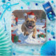 A playful French Bulldog runs happily through the snowy winter scene, wearing a festive red Christmas hat. This delightful design highlights the breed’s sturdy build, expressive face, and affectionate nature while capturing the joy and magic of the holiday season. A cheerful winter moment full of festive charm.