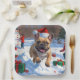 French Bulldog Running in Snow with Christmas Hat Paper Plate