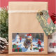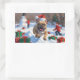French Bulldog Running in Snow with Christmas Hat Rectangular Sticker