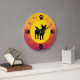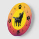 Dog owners and dog lovers will enjoy this colourful design featuring a French Bulldog silhouette and paw prints representing the numbers on the clock face, with a background of sunset colours of oranges, yellows and reds.