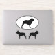 Oval and die cut sticker set. These durable dog silhouette decals are waterproof and scratch resistant. Stick these French Bulldog stickers to your laptop, phone, notebook, water bottle, helmet, luggage, or your car window. Visit Jenn’s Doodle World for even more dog breed vinyl decals and Frenchie lover’s gifts.