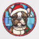 Elevate your holiday decor with this exquisite stained glass Christmas ornament. Crafted with meticulous attention to detail, this ornamental masterpiece captures the essence of canine charm. Its vibrant colours and intricate design evoke a sense of warmth and joy, adding a touch of elegance to your tree. Handcrafted with love, this timeless piece is a perfect gift for dog lovers and enthusiasts alike. A must-have for Christmas enthusiasts, stained glass ornaments, pet-themed decorations.