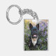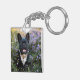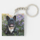French Bulldog Stands in Flowers Key Ring