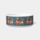 This is a heavy, durable bowl decorated with Tibbies of many colors, the perfect size for hungry/thirsty Tibs. The design is interesting and printing clear.