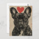 Transport yourself to a bygone era with this enchanting vintage postcard, showcasing the delightful charm of a French Bulldog nestled within a heart motif. The sepia-toned scene radiates timeless warmth, capturing the affectionate spirit of this beloved breed. A heartwarming tableau that invites you to savour the nostalgia and celebrate the enduring companionship of the French Bulldog in a classic, romantic setting.