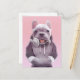 French Bulldog with Headphones Illustration Announcement Postcard