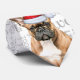 Woof art in soft faded grey on white sets off a very cool and cute French Buldog wearing a Santa hat for the dog lover's holiday celebrations.