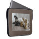 This laptop sleeve looks exactly as it does in picture. I actually thought is was too small until I put my laptop in it. It's a bit snug, but it fits. Figure it will stretch a bit, hopefully seams hold. Them seem good for now. I didn't have any personalization done, looks great as is.