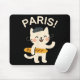 French Cat With Baguette Cute Cat Paris Funny Anim Mouse Pad