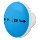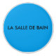 The word for bathroom in French, in black letters on a turquoise solid background.