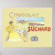 Chocolat Sucard, or Chocolate Sugar, is a great French Chocolate. The antique chocolate scene shows a proper Art Nouveau lady in a big yellow dress sitting at the table sipping hot chocolate. A little girl in a bonnet and yellow dress are standing next to her having a sip of chocolate sucard as well. The Chocolate advertisement's background is a watercolor scene of the French countryside, showing a castletown, and the label says, "Chocolat Sucard". Of course, the French are known for their little outdoor coffee and chocolate cafes -- and it was the same in the Victorian days when people would sit outside, enjoy the air, and have their chocolate.