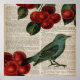 French country bird retro botanical red cherry home accessories. Vintage cherries fashion accessories for cherry lovers.