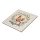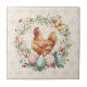 Decorative tile - hen/chicken floral scene on light brown fleur de lis background. It's a ceramic tile which can also be used as a coaster or a decorative art piece.