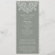 Two-sided program with a French country lace garden theme in sage and white. Colours can be edited using the edit design tool. Contact the seller for other custom colours, digital files, or custom layouts.