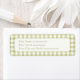 Romantic country cottage cabin core style summer sage grass green and off white gingham chequered plaid pattern. With a matching off white text box with fully editable return address text. This is a fixed pattern, but you can change the size and position of the pattern.
