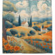 This item features an illustration of the French countryside with rolling hills, a farmhouse, trees, flowers, and wispy clouds in the sky.