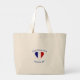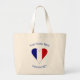 Design on personalised large tote bag shows a funky shaped heart filled with the flag of France. Above is a spot for a name to personalise. Below, add an occasion (for example Bastille Day, birthday, reunion, etc.) and the year. Or, just add your own text. The French flag is blue, white, and red in three vertical stripes. Great to take to family reunions, clubs, and travel groups. Moms with French heritage will appreciate it for a Mother's Day.