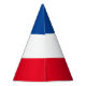 French flag party paper cone hat. Simple red, white, and blue France flag stripes.