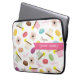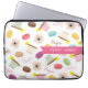 An electronics bag featuring illustrations of pink French anemone flowers, teacups, French macarons, and "bonjour!" Personalise with your name on front.