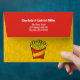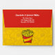 Cartoon illustration of small pack of french fries. Junk food outline icons yellow pattern background. Custom text.