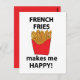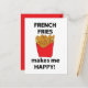 French Fries Makes Me Happy French Fries Postcard original design by Nisha Prabhu. Indulge in crispy golden goodness with this adorable postcard featuring a cheerful French fries illustration. Perfect for sending a smile to friends and family or decorating your kitchen with a touch of whimsy. French fries make everyone happy!